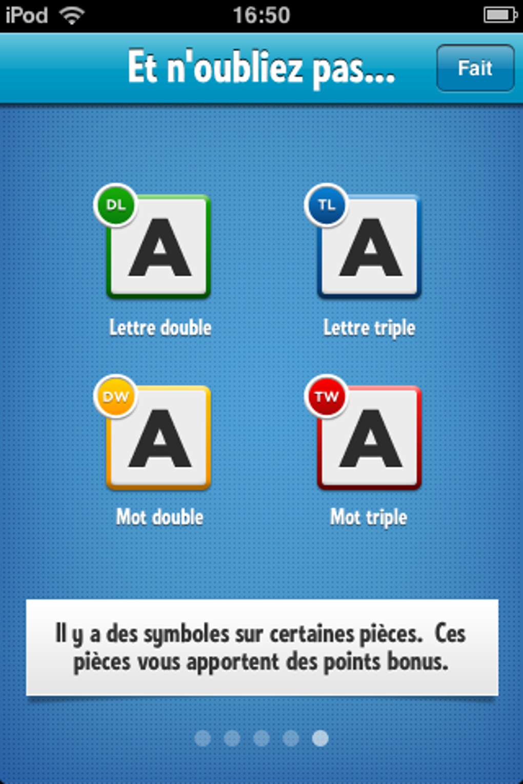 Durante o jogo você ganha bônus usando as letras marcadas com um símbolo especial que duplicam ou triplicam a pontuação.